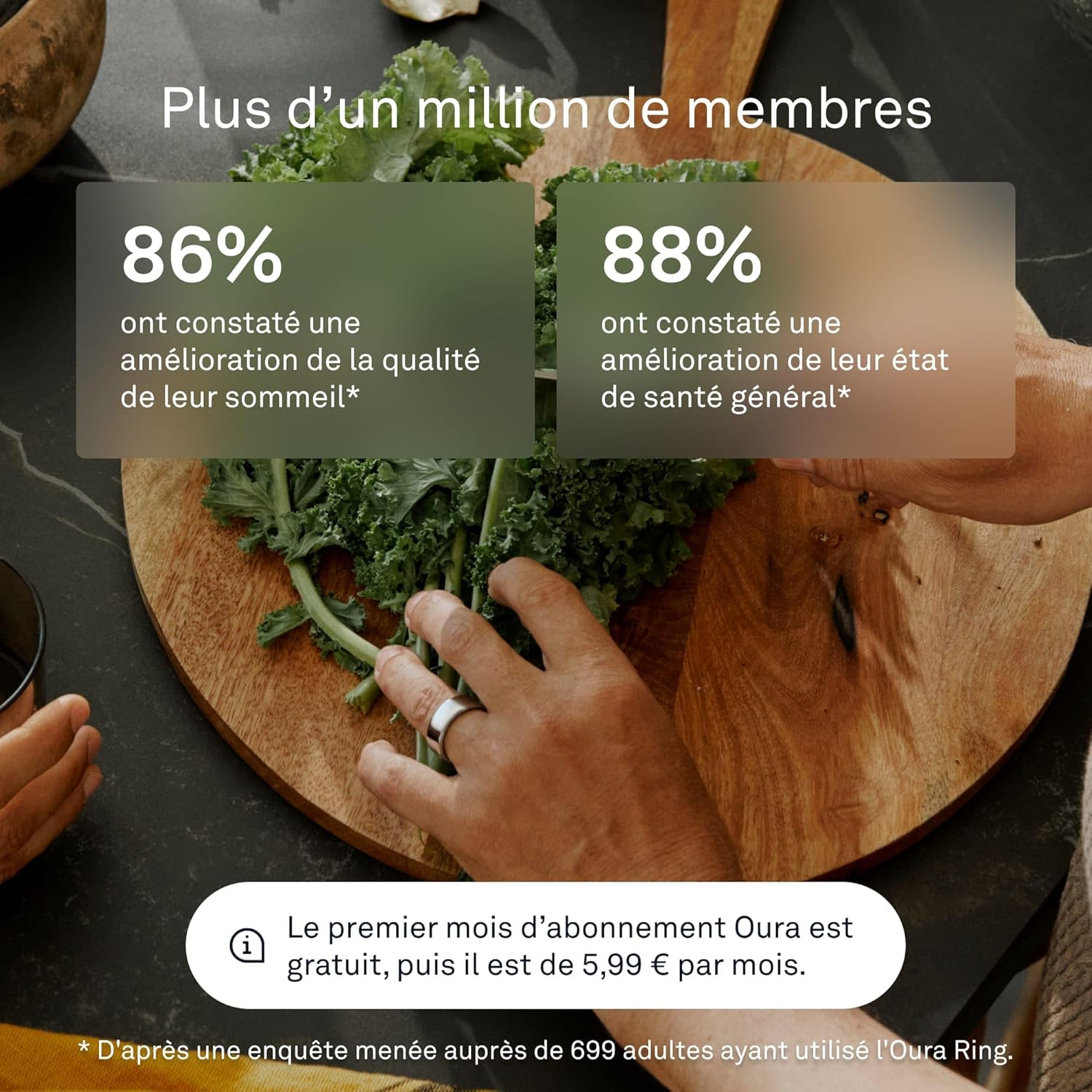 OURA SUBSCRIPTION – The first month is offered with your purchase (€5.99/month afterwards). Offer only for new members. You can choose a prepaid subscription at €69.99/year. The subscription is linked to your Oura app account, not your tréteaux.