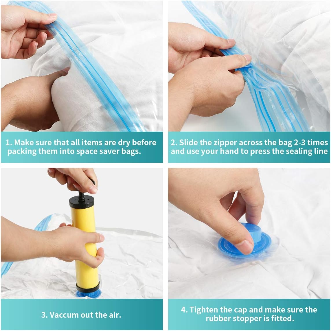 QH Sacs de Rangement sous Vide Lot de 4Type 100x80cm Housses de Rangement sous Vide Voyages Réutilisables pour Matelas Literie Oreillers Vêtements Couettes
