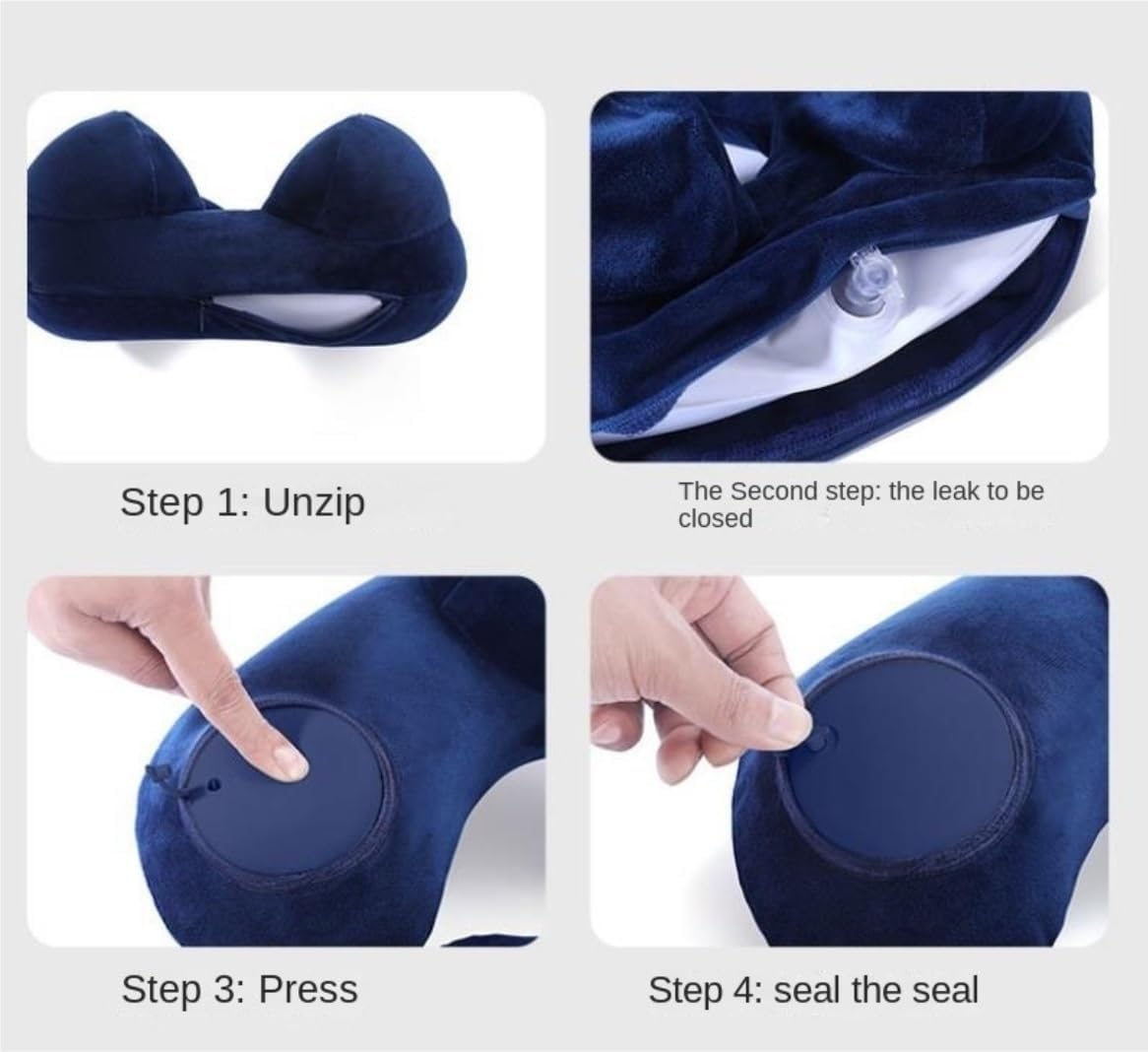 QUICK INFLATION FOR CONVENIENT USE – Without inflating, this travel neck pillow can be inflated quickly by blanchisserie the push button. The quick augmentation function allows you to use this pillow more easily. Deflation is also quick and easy.