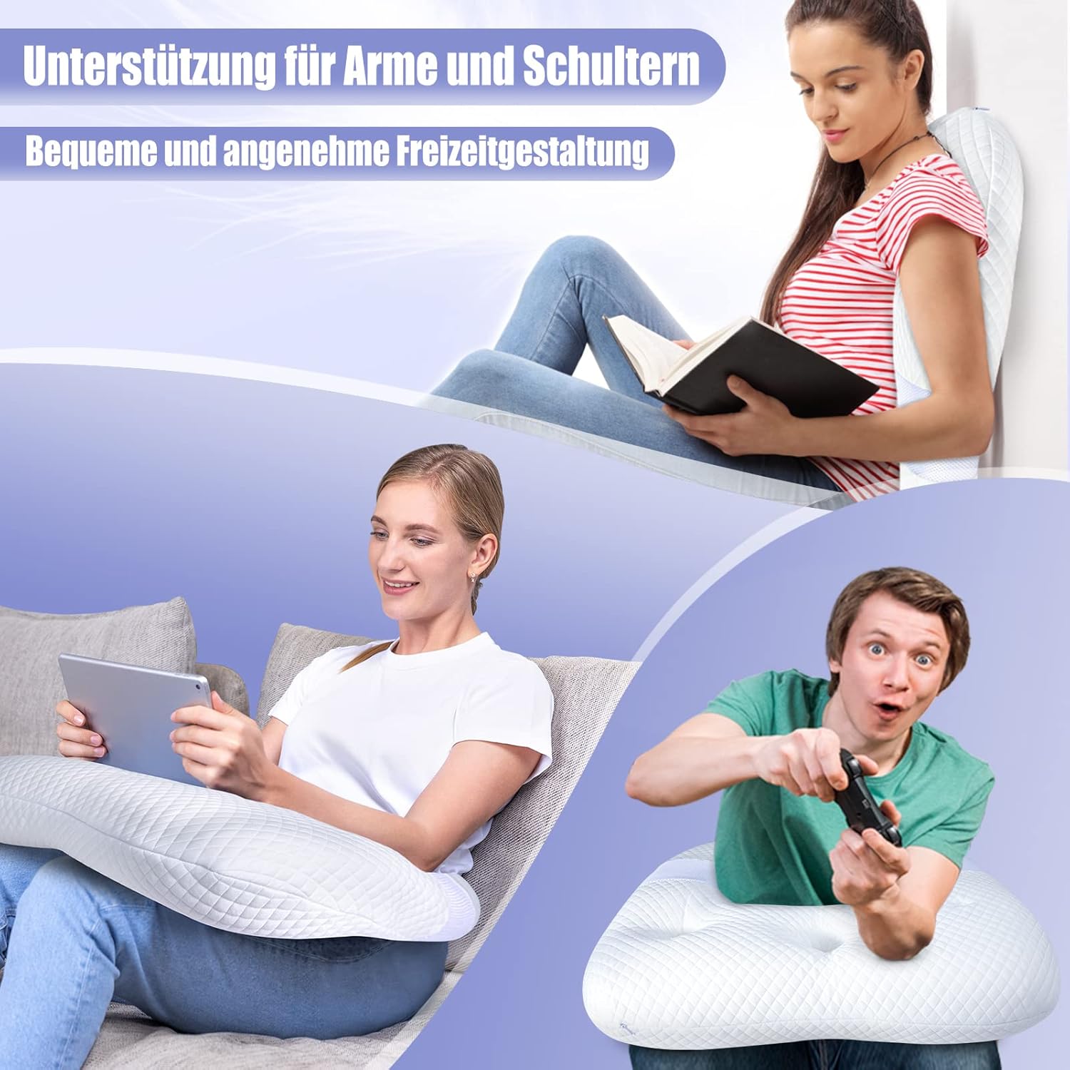 【MULTI-APPLICATION PILLOW】 This ergonomic pillow for side sleep has many uses, including but not limited to: reading, playing video games, watching TV, working, wagon-lit and more. And it is very suitable for people with shoulder and neck condensation and anyone who wants to have a better sleep