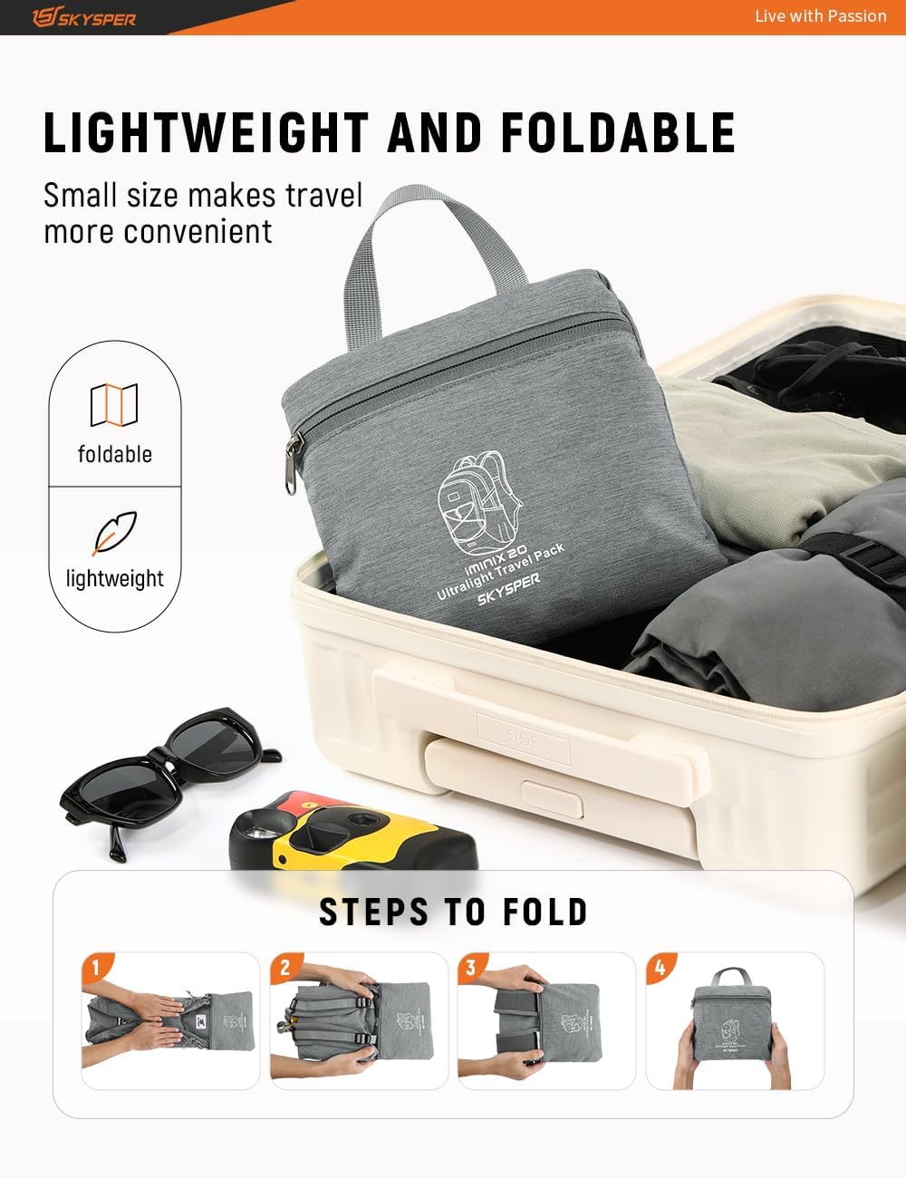 SKYSPER Lightweight Foldable Backpack 20L Small Backpack for Men and Women with Belly Belt Hiking Backpack for Excursion Travel