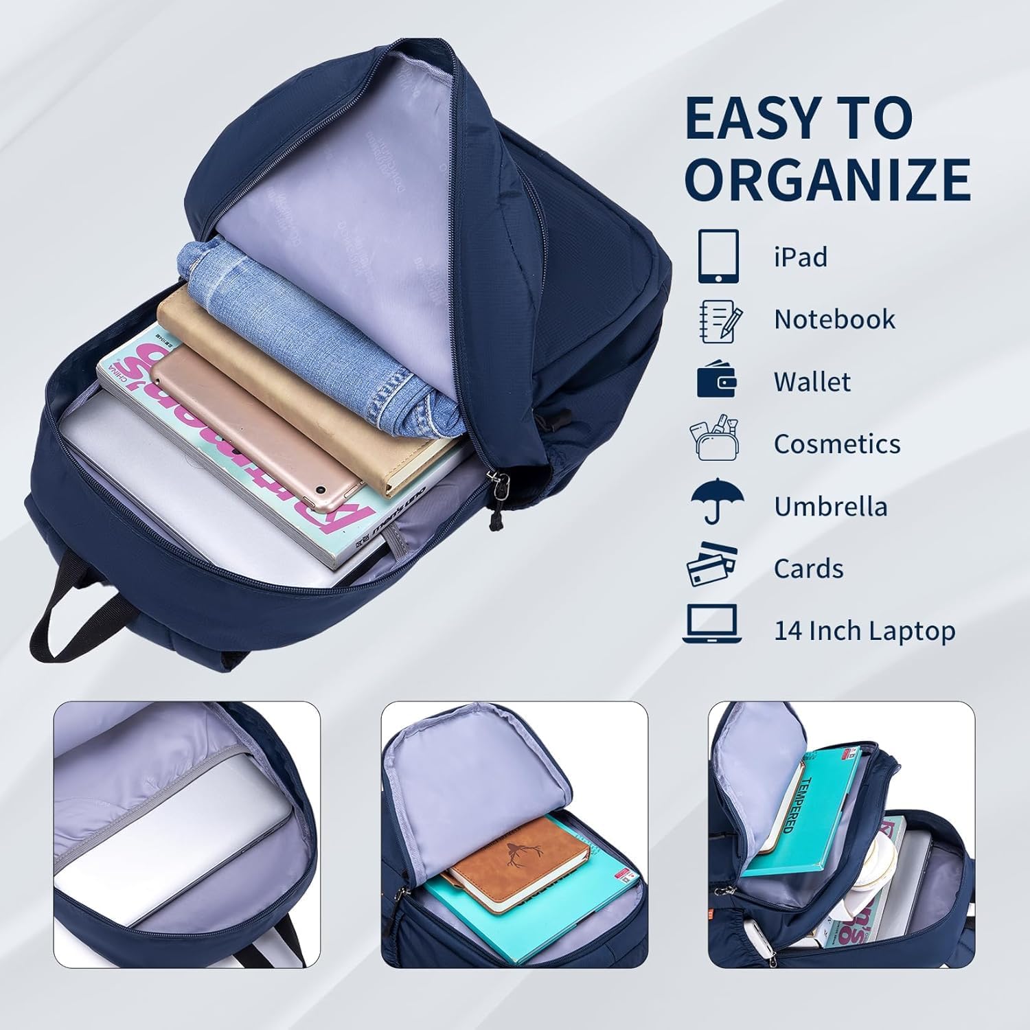 【Multi-Pockets】This 40x30x15cm travel backpack includes a spacious droit compartment and cleverly designed pockets, providing plenty of space for all your carry-on needs.The backpack has a complet of 7 pockets, including a endroit zipper pocket, a droit pocket and a 14-inch laptop compartment, an anti-theft back pocket and 2 side pockets. Nombreux pockets keep your belongings organized and close at handball during flight.
