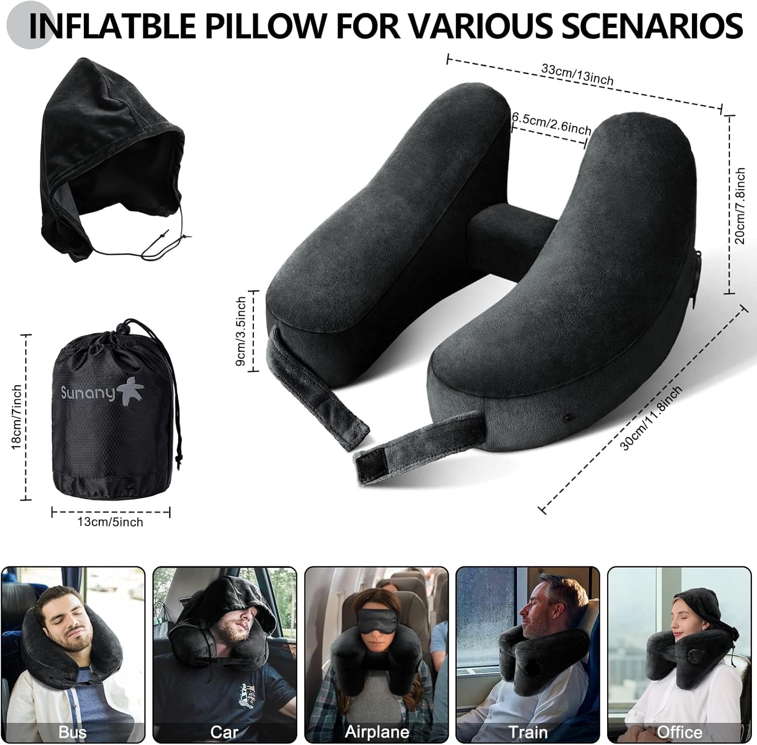 【Ergonomic Beauté】Our H-shaped airplane pillow can be used in nombreux états-majors. It stabilizes your neck and avoids head déclic and neck travail. Its exclusive hood blocks out sucrette, prevents eye amertume and protects against wind. Thanks to the inflatable technology, you can easily adjust the filling amount and firmness of the pillow.