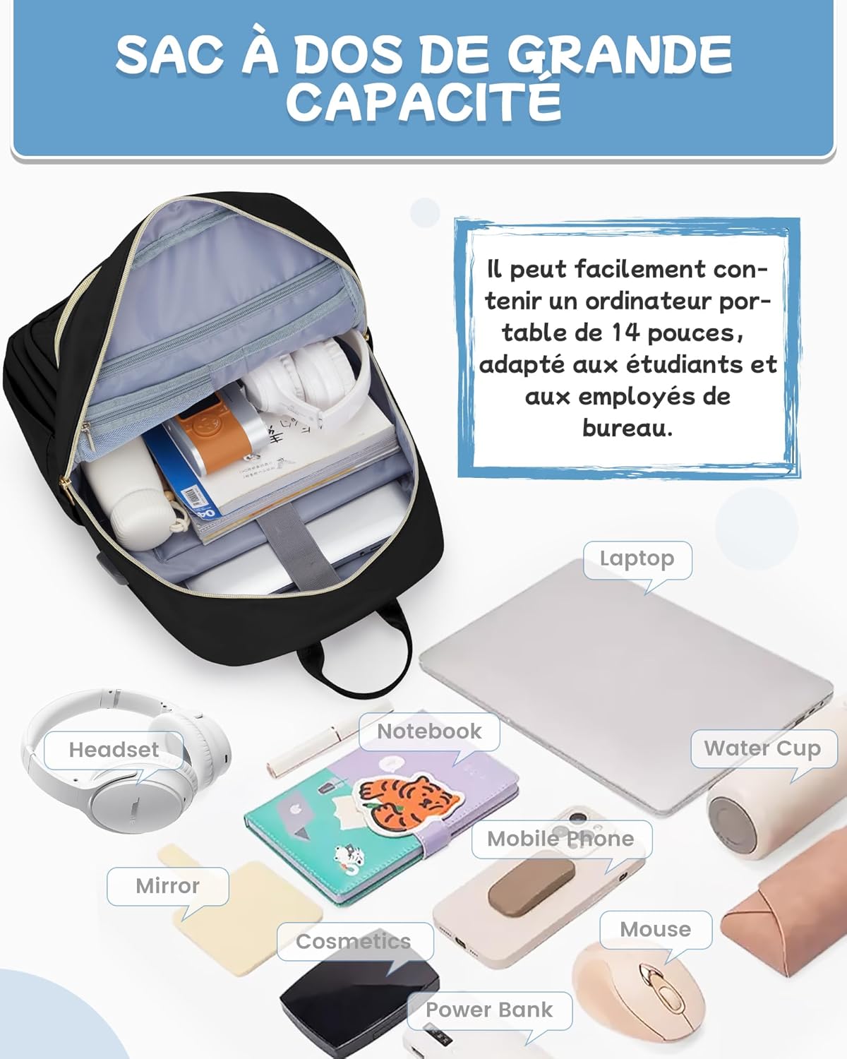 Soyez le premier à laisser votre avis sur “suradar Waterproof Laptop Backpack, Women’s Backpack for 15.6 Inch Laptop, Teenage PC College Girl School Bag for Travel Work School”