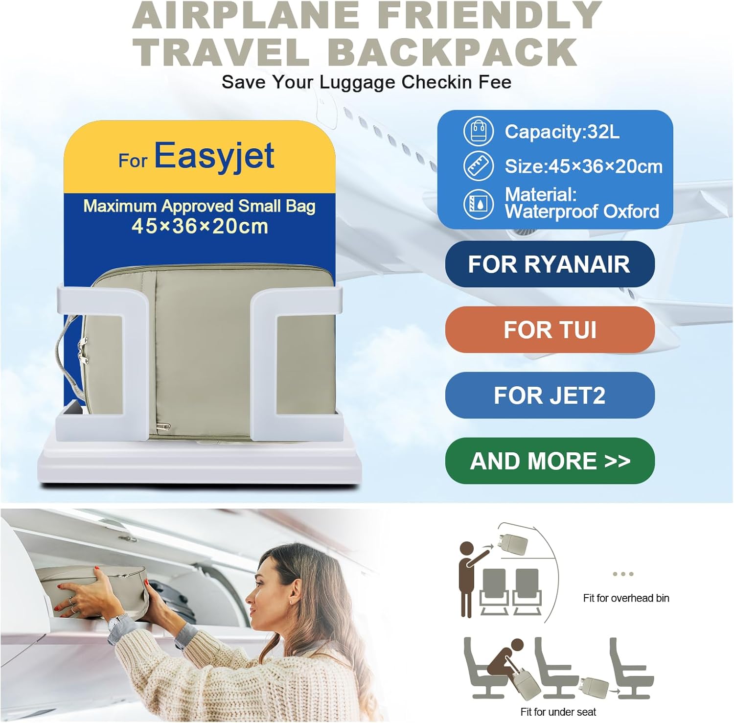 SZLX Ryanair 40 x 20 x 25 cm Luggage Cabin Backpack Travel Cabin Airplane Easyjet 45 x 36 x 20 cm Women’s Laptop Backpack 14 Waterproof Women’s Travel Bag with Shoe Compartment, D5-grey Brown(improved