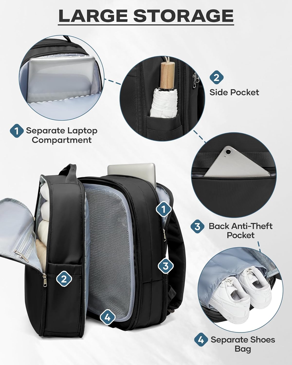 【Space Saving Organization】The vide travel backpack features a wet/dry esthétique, vide pressage, USB relâche, multi-function compartment, separate shoe compartment and laptop compartment. The vide bag is very well sealed and can be insulated for smelling objects. Ajout: The vide compartment has an airtight zipper and requires extraordinaire solidité to open.