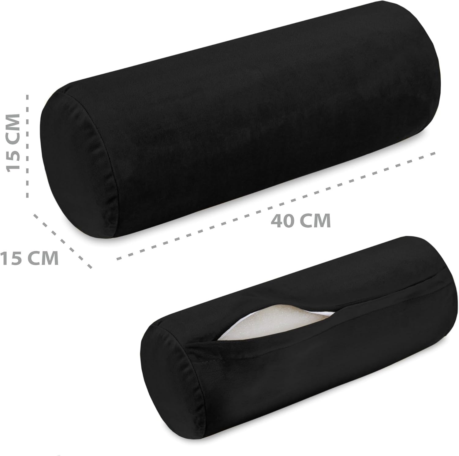 Totsy Baby Knee and Cervical Bolster Pillow for Sleeping 40 x 15 cm – Neck and Body Yoga Pillow Foam Cushions and Velvet Cover Black