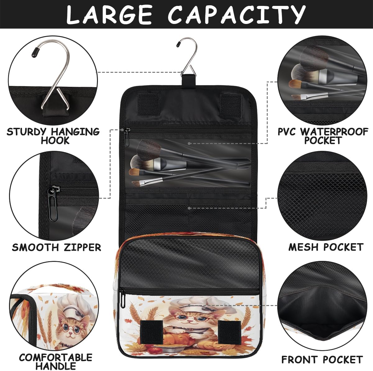 Trousse de toilette à suspendre avec oreilles de chat et citrouille – Trousse de toilette de voyage – Accessoires de maquillage – Étanche – Cadeau pour femmes et filles, multicolore, 9x4x18.5 in