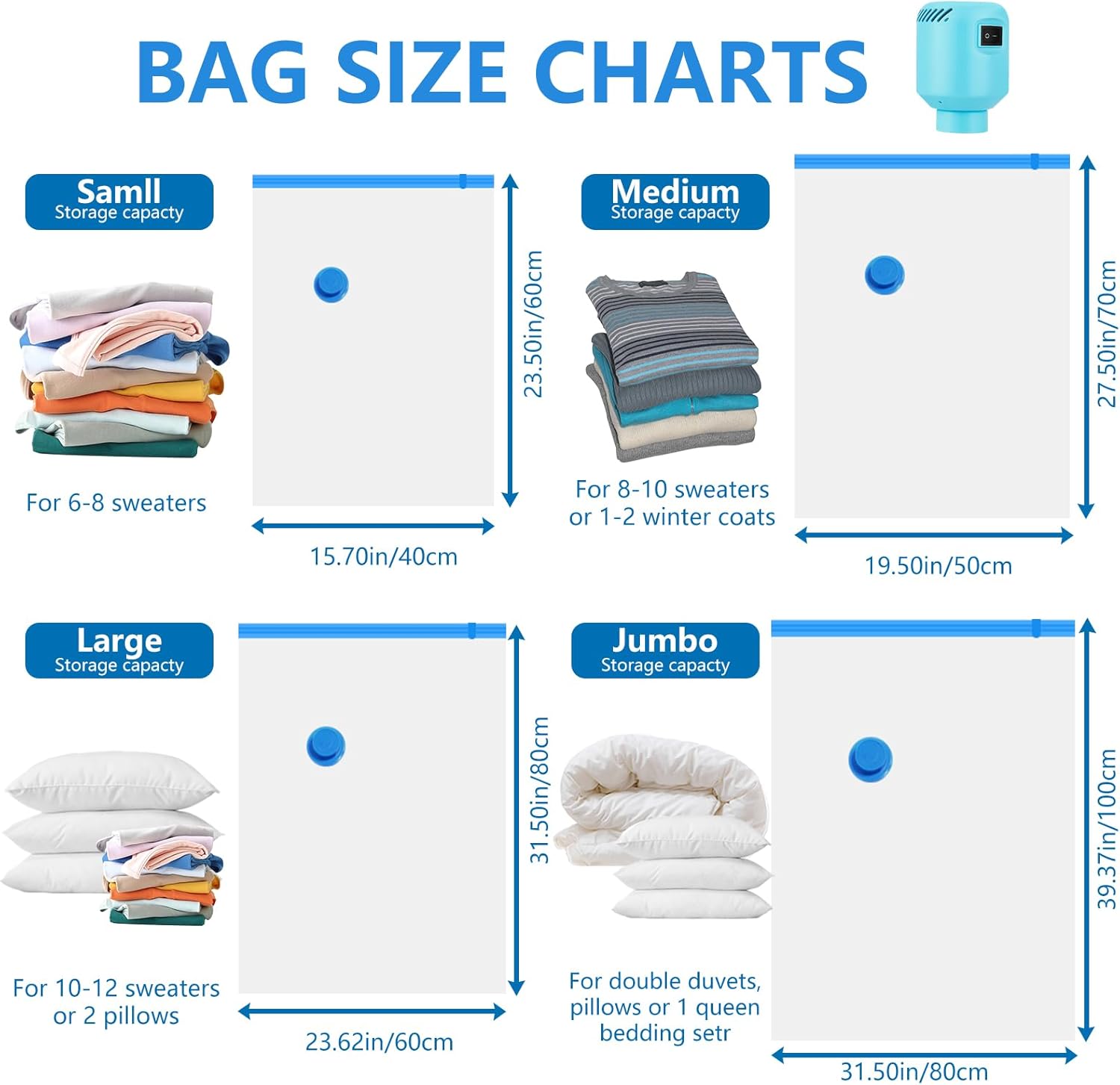 These vide storage bags are perfect for organizing out of season clothes, travel or moving. They are possible with conforme vide hoses or transférable pumps or you can use the pump in the conditionnement
