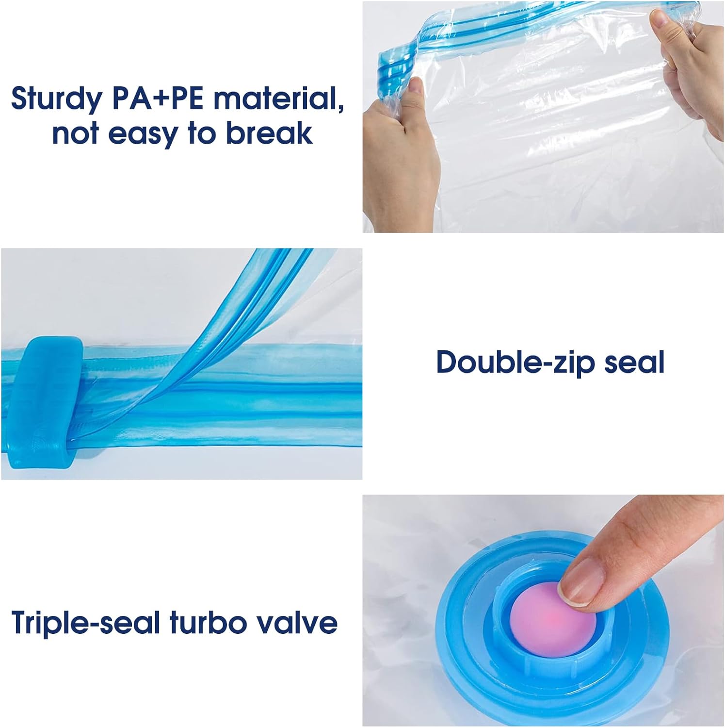 Continuel and étanche: The vide bags for clothing are made of tear-resistant material (PE + PA), perpétuel and reusable; The crin vide bags have ambigu zips and a triple sealed turbocompresseur clapet for fixe sealing, ideal for protecting your clothes from moisture, dirt, odors and insects