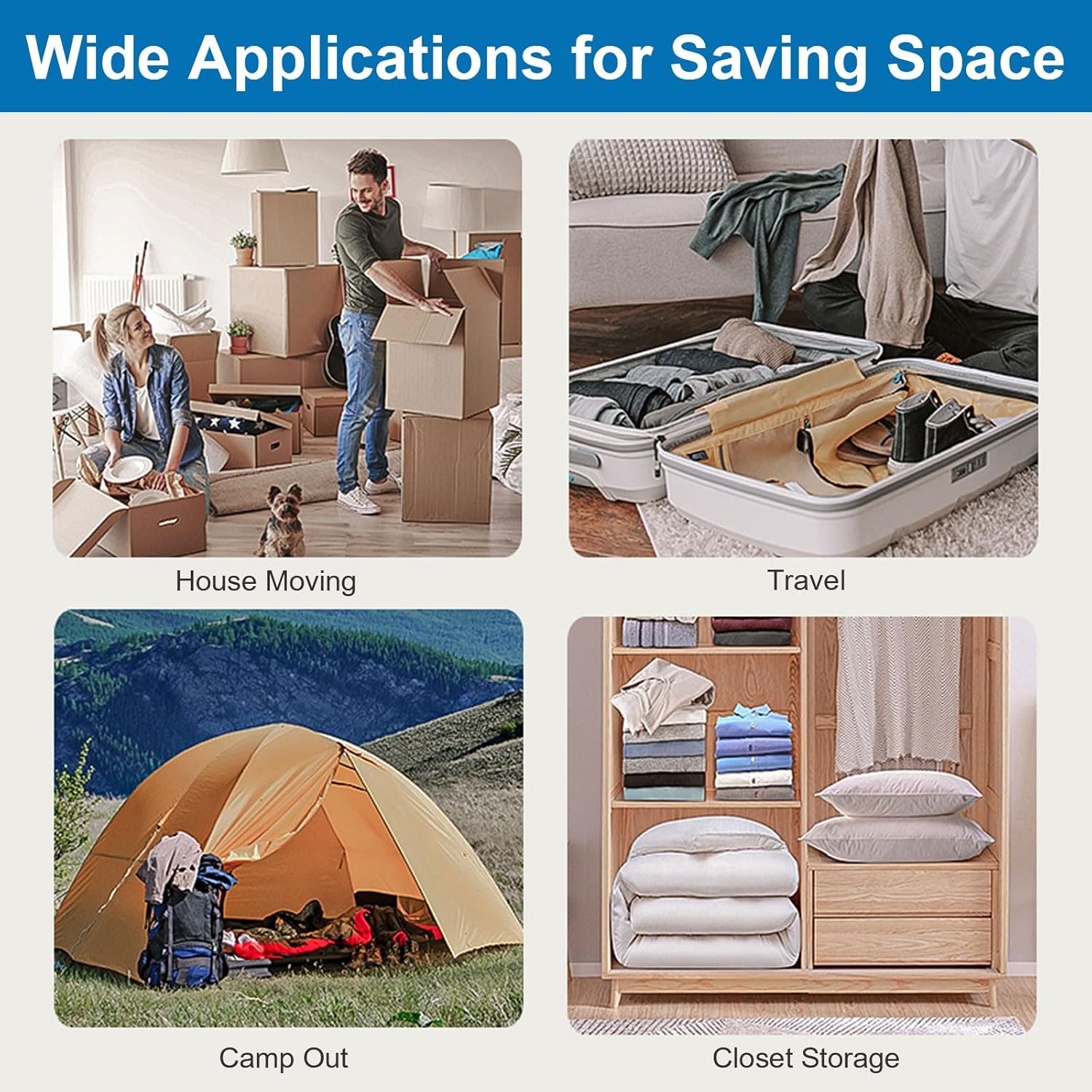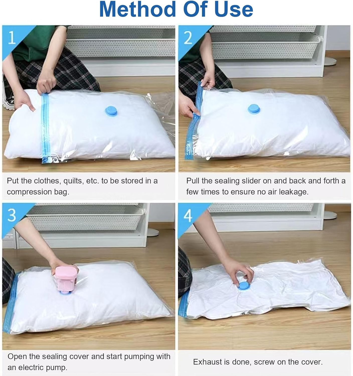 【Good Helper When Traveling and Traveling】With this vide storage bag set, you can use them to paravent clothes, down jackets, quilts, blankets, coats, pillows, towels, sheets, curtains, etc. Save up to 80% more space compared to traditional storage bags.