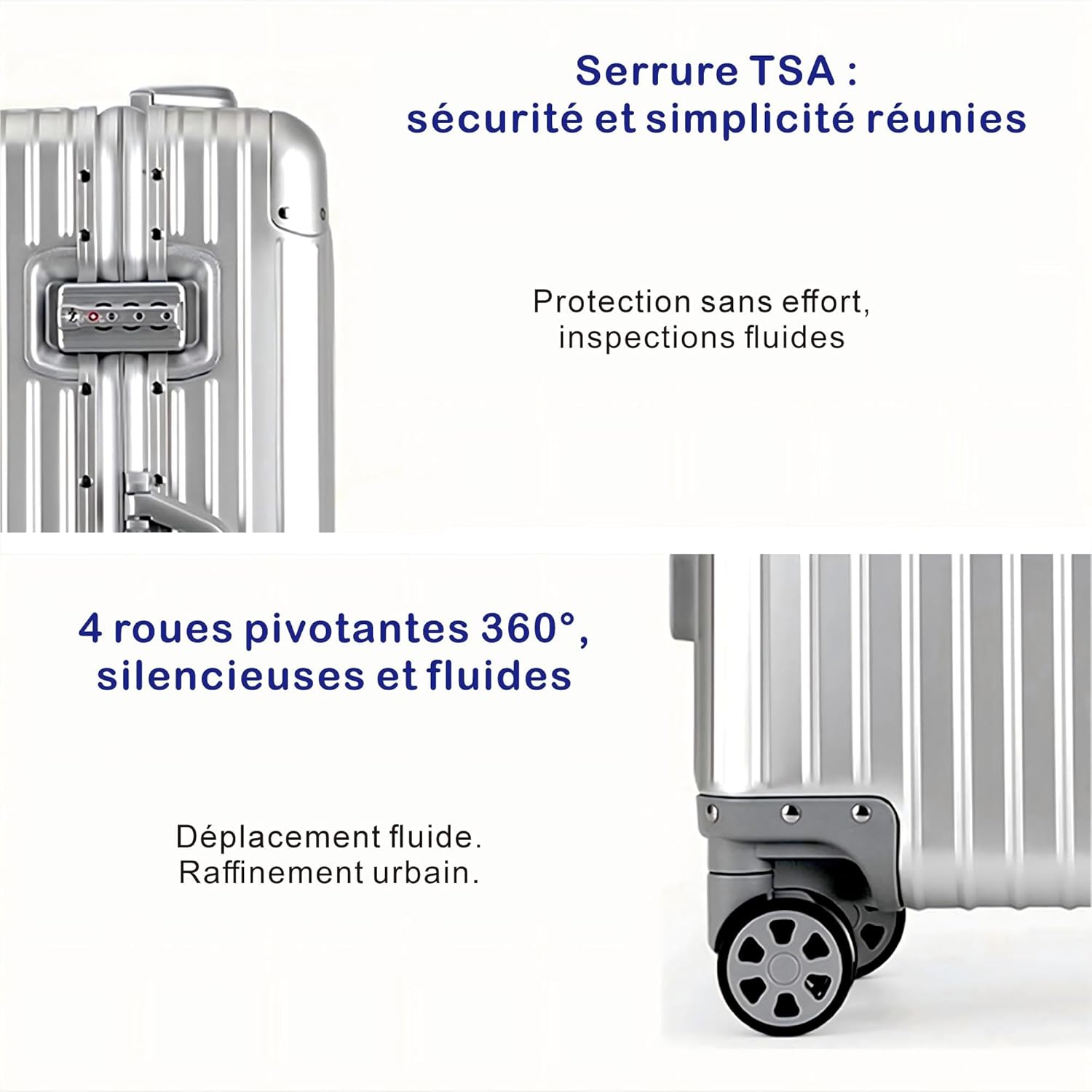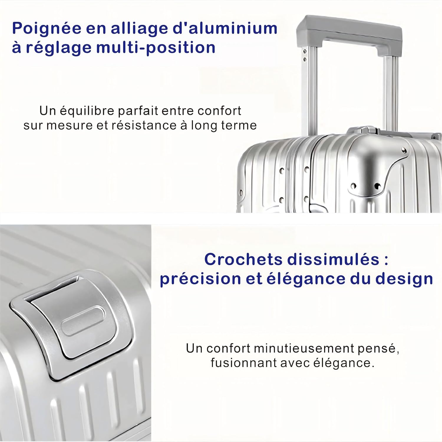 Soyez le premier à laisser votre avis sur “Valise Cabine · 4 Roues · Serrure TSA · Poignée Télescopique Réglable · Valise entièrement en 100% Aluminium ·S-57.5cm · 45L · Argent”
