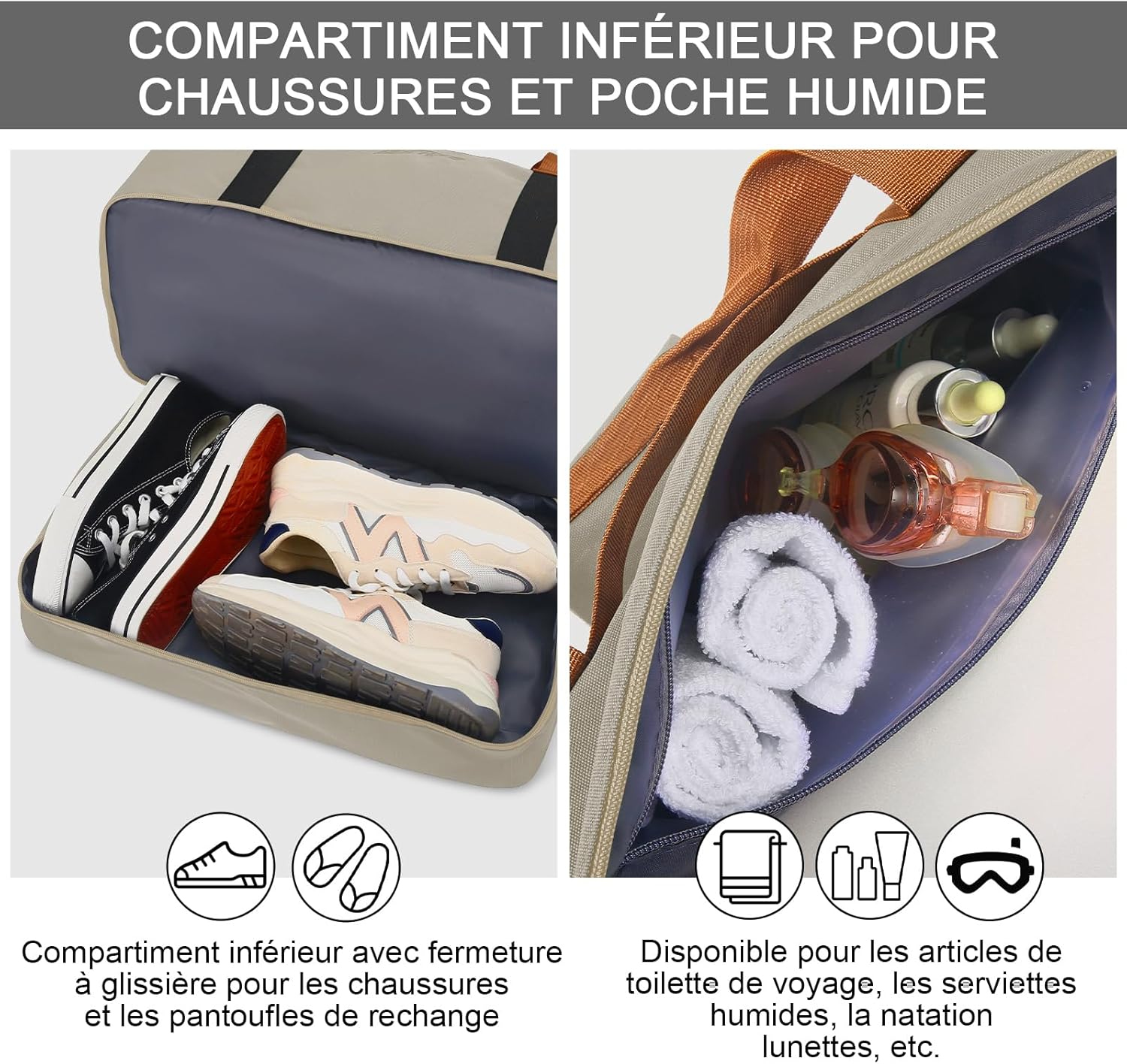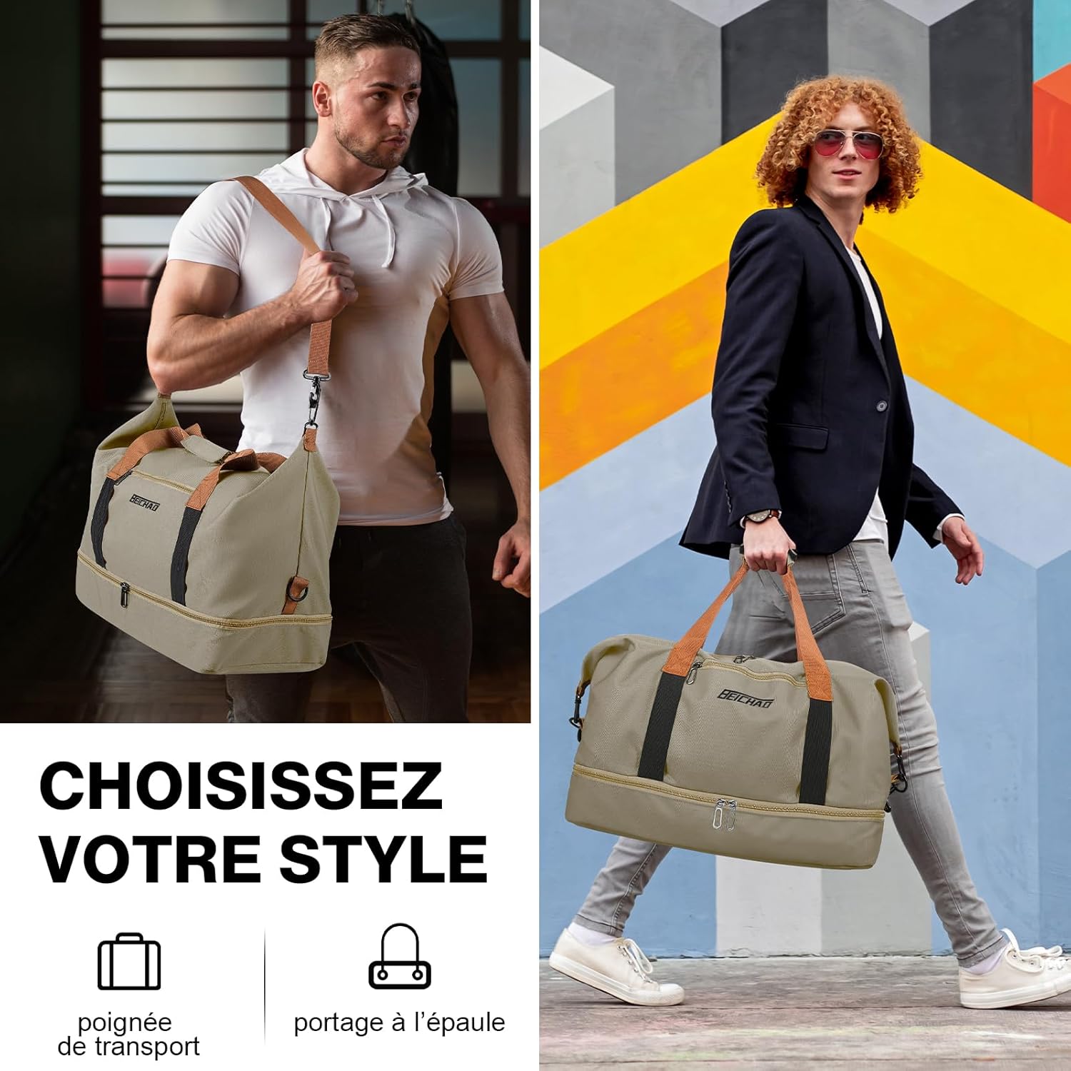 Water-repellent and wear-resistant fabric — Unisex gym gym bag uses high density oxford fabric with wear-resistant and étanche features to accompany your journey. The lightweight stylisme allows you to enjoy a lighter produit.