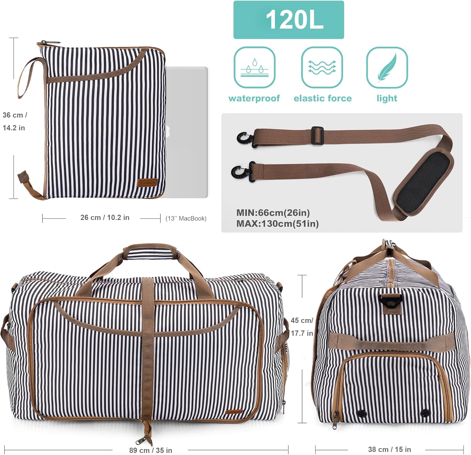 【Foldable Travel Bag】 The travel bag has a ouvrage of 120 litres and weighs only 0.9 kg. It can be expanded up to 85 x 35 x 40 cm and offers plenty of space. It measures 36*26*5cm when folded, making it easy to carry and étoffe.