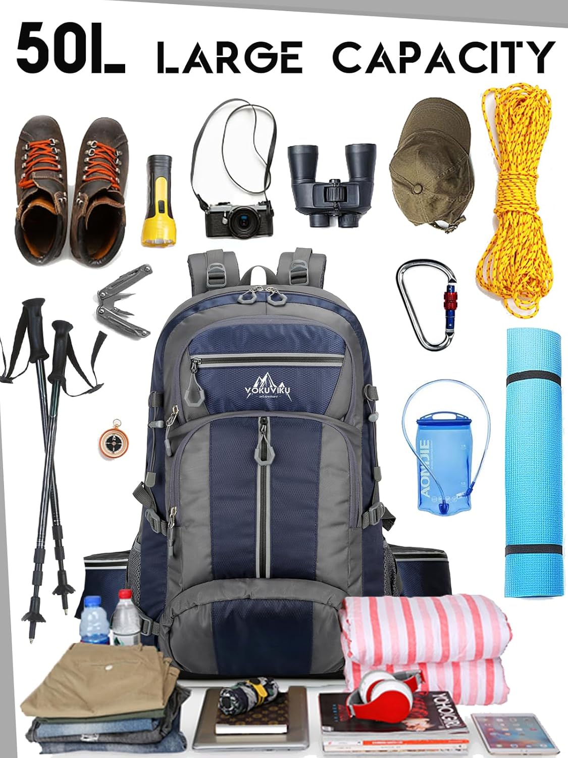 VOKUVIKU Havresac de randonnée envers individu et amie 50 l Volumineux havresac de hauteur verso banlieue de flanc assèche envers promenade, camping, aventure