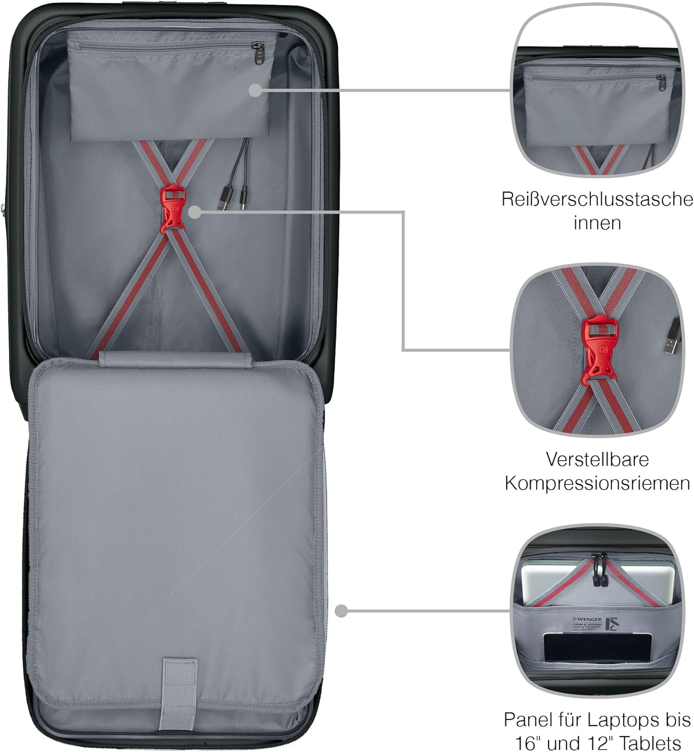 EXTENSIBLE : Cette caisse est dotée d’un logique d’augmentation de 5 cm moyennant surtout d’infinitude, d’un alvéole moyennant micro de 16″ et rayonnage de 12″ max., d’une courroie de contrainte moyennant visser vos habillement et d’un arrivage USB intégré (USB-A et USB-C).