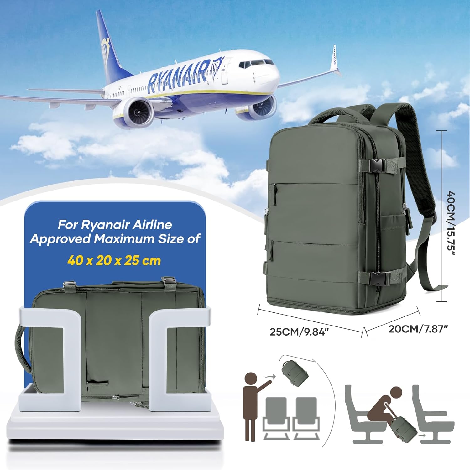 【Cabin Bag for Ryanair】WEPLAN travel backpack is 40 x 20 x 25 cm, which perfectly meets Ryanair’s carry-on requirements. It optimizes the baggage allowance and facilitates boarding. This backpack is also associable with most airlines and its 180° opening makes it easy to check airport security. It can be placed in the luggage rack or under the seat.