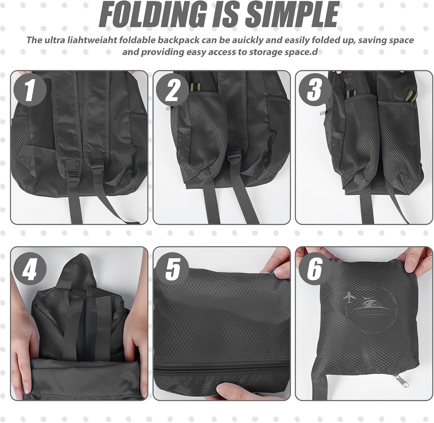 WIYETY – Lot de 2 sacs à dos pliables ultra légers – Émondé norme – Havresac de virée détaché – Classification multicouche – Revers la virée, les voyages, les randonnées à célérifère (ténébreux + émoustillé)