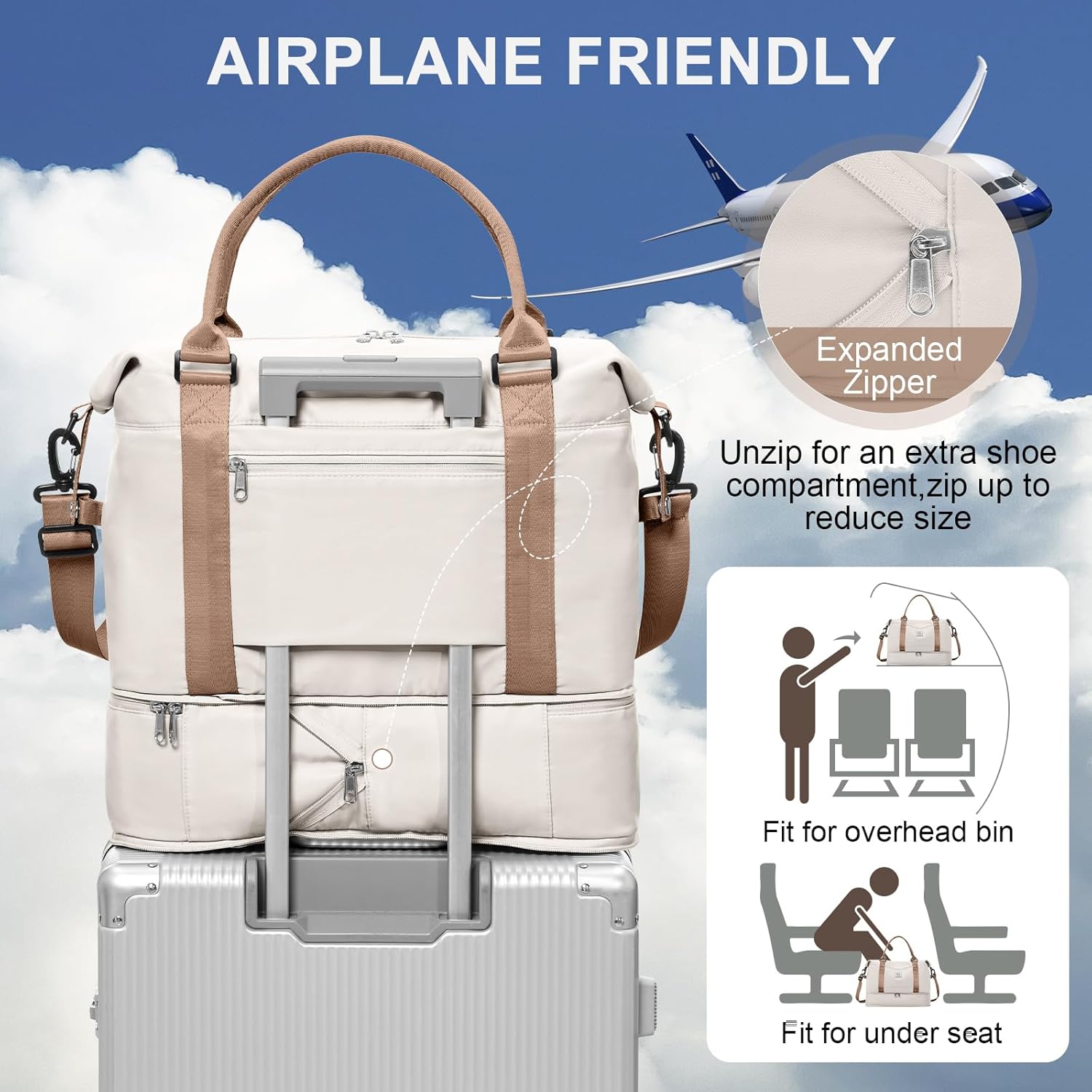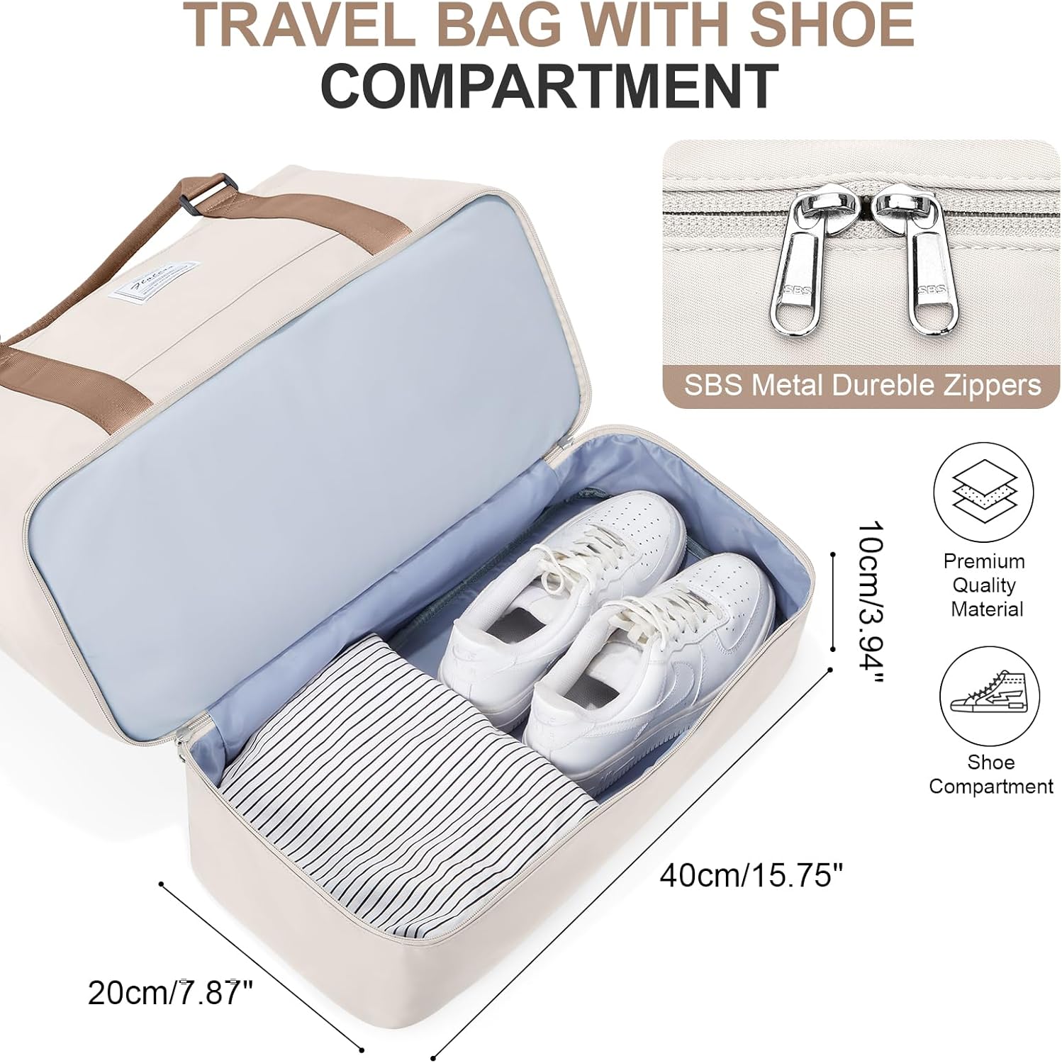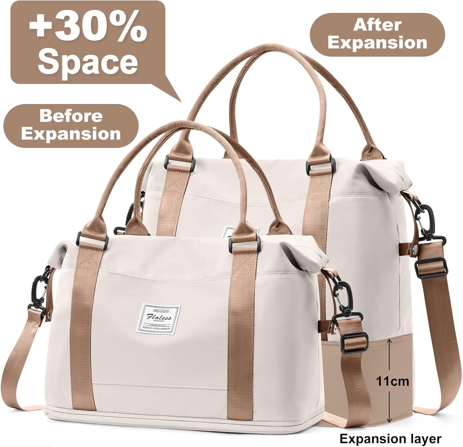 【Weekend Bag with Shoe Compartment】 A separate shoe compartment can help you better carry and portière your shoes in your travel bag, even if it is dirty and other items are still not stained.