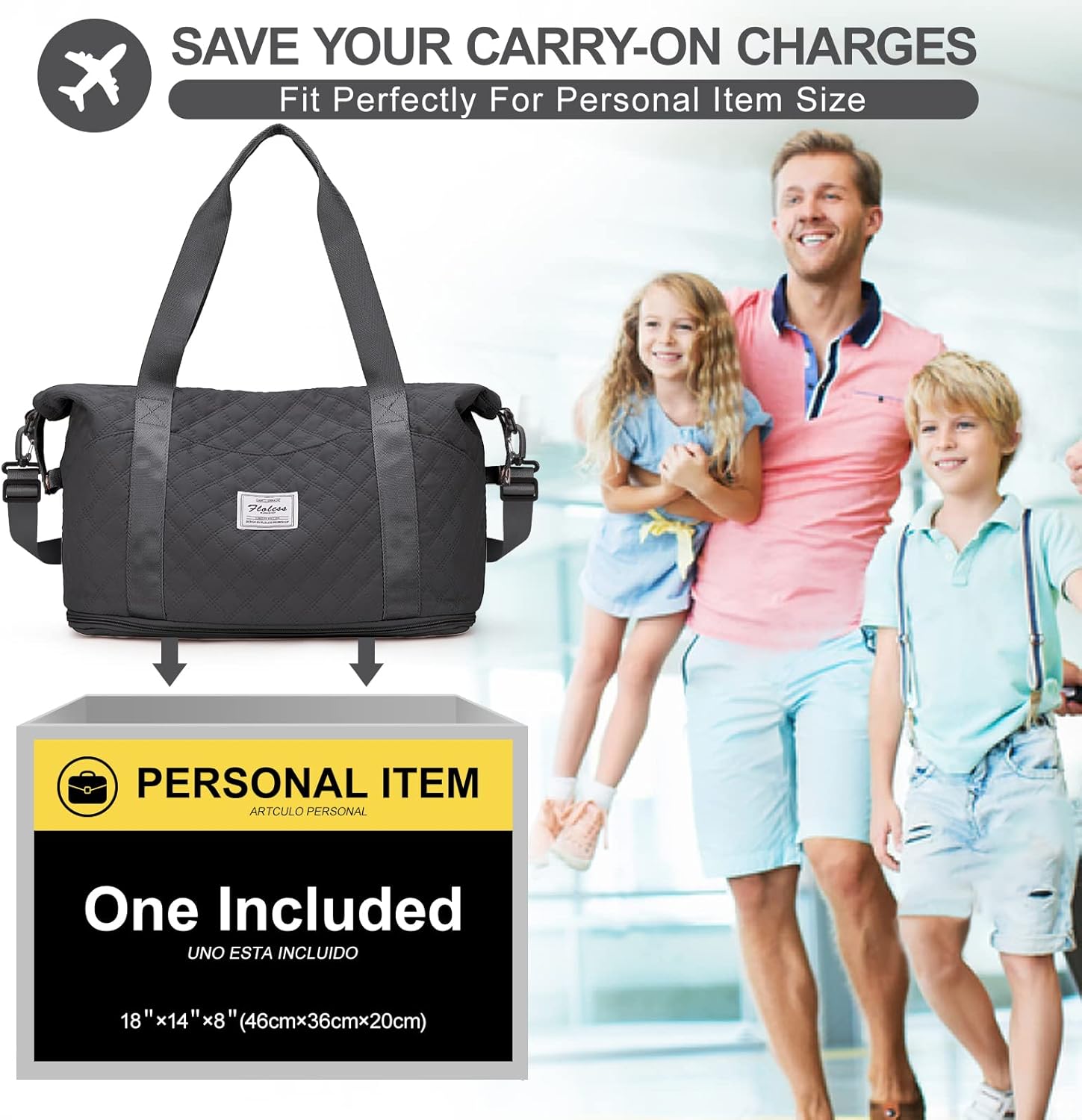 Women’s Travel Bag Sports Tote Bag for Men Waterproof Weekend Bag, Ryanair Airplane Cabin Luggage Cabin 40x20x25 easyjet 45x36x20 Expandable Gym Bag, B3-grey Black, tote