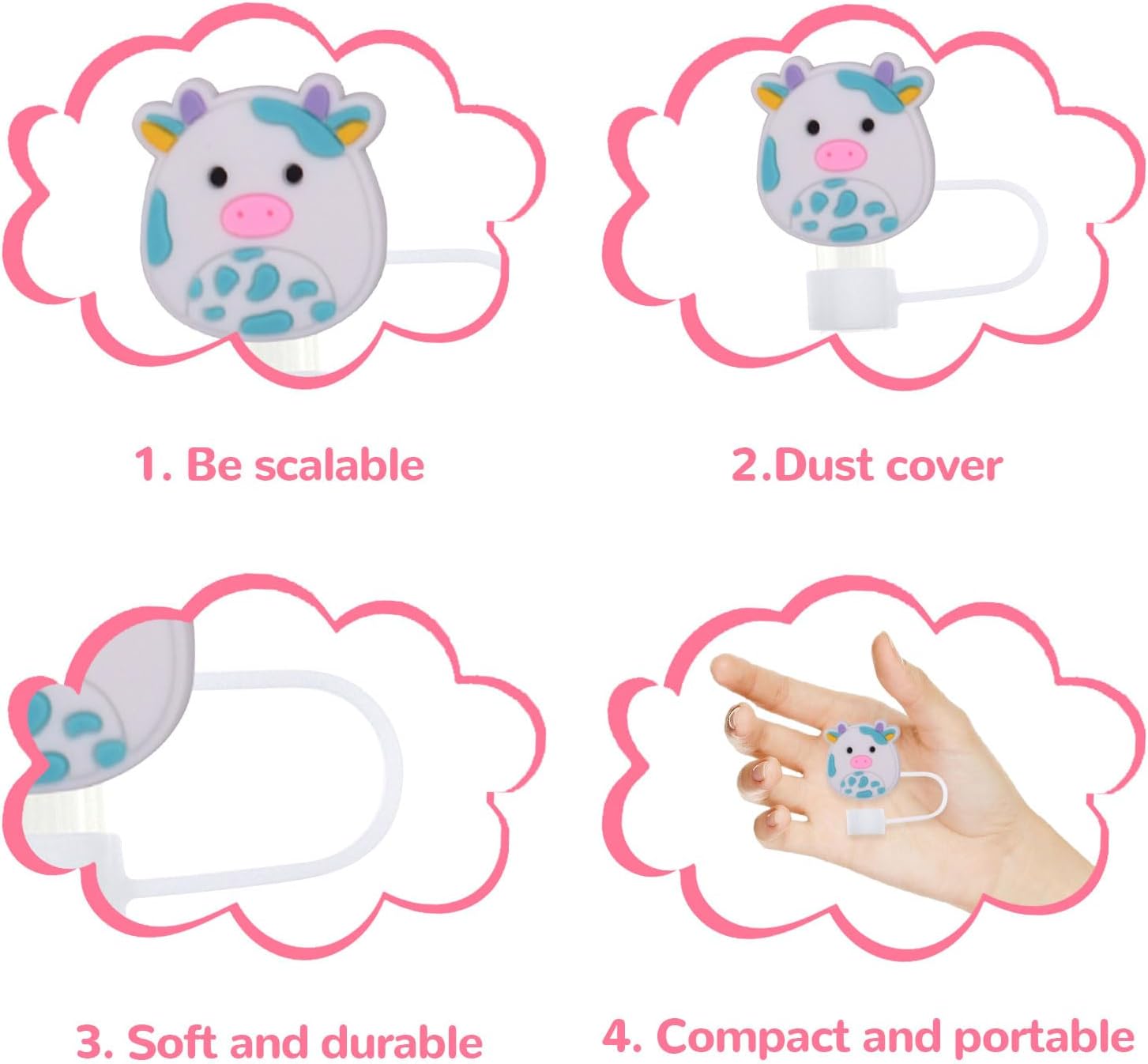 【12 Paquet Straw Lids for Cup】You will receive 12 pieces reusable silicone straw lids, cute cow designs. Enough quantity and different styles will meet your daily decorative needs.