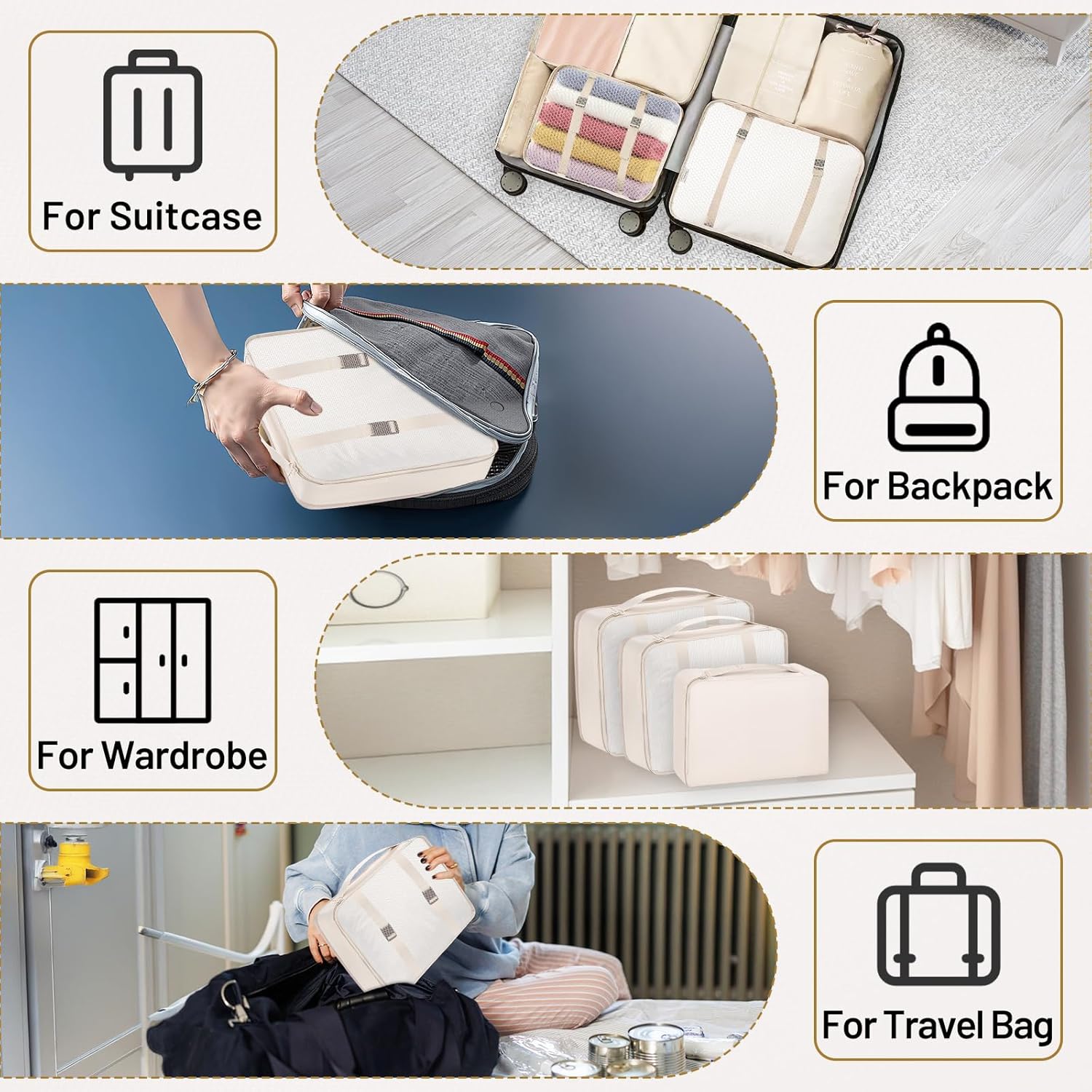 Indécis set for perfect storage: This set includes bags of different sizes to separately portière clothes, shoes, underwear, cosmetics and electronic accessories. Ideal for families or immense journeys – everything stays well organised, éclatant and easily naturel
