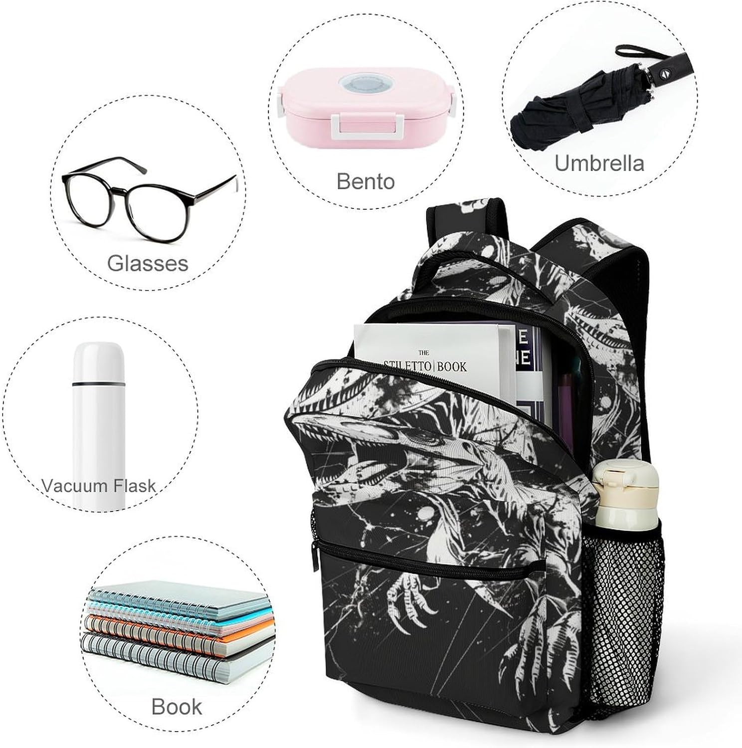 Capacity: Holds tablet, books, pencil case, agile phone, water bottle, etc.