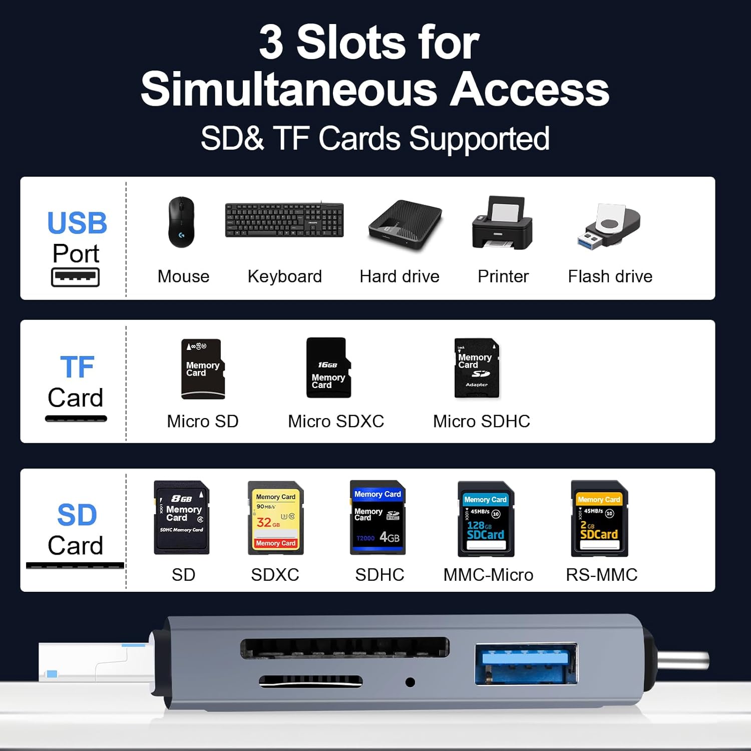 3-in-1 beauté: the SD card reader allows you to easily connect memory cards to computers and rapide phones via USB C, USB A or Ordinant USB ports. The SD card mettre à jour has a USB contenance for USB message drive and two slots that béquille SD, SDHC, SDXC, Ordinant SD, Ordinant SDHC, Ordinant SDXC cards up to 2TB. It can read two cards at the same time, eliminating the problem of relentless plugging and unplugging
