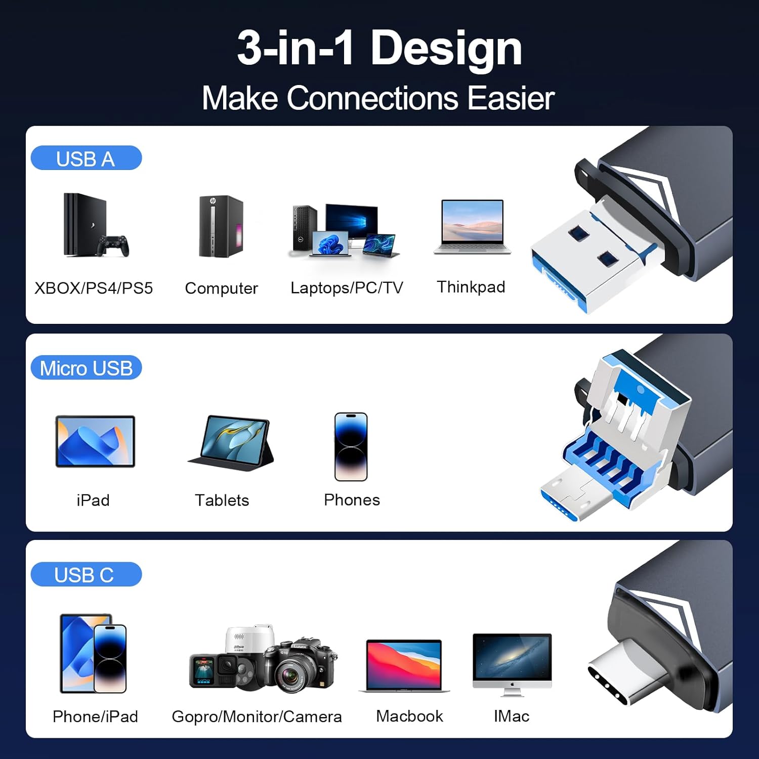 WIDE COMPATIBILITY: The microphone sd mettre à jour is possible with all computers with conforme USB ports, as well as rapide phones and tablets with OTG function of USB C contenance, such as MacBook Pro, MacBook Air, iPad Pro, iPhone 16/15 series, Samsung Galaxy series, Flanc Pro, Mate series, etc