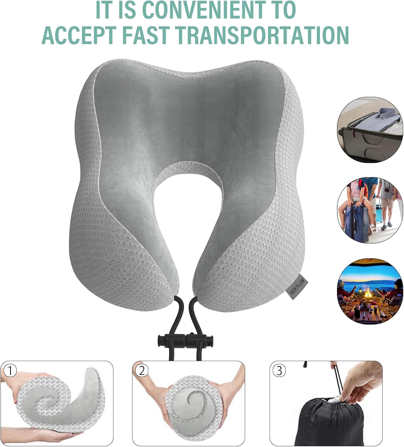 TRAVEL PILLOW The neck pillow is made of high quality programme velvet and a comfortable slow rebound memory foam core to give you a comfortable and relaxing wagon-lit experience when traveling.