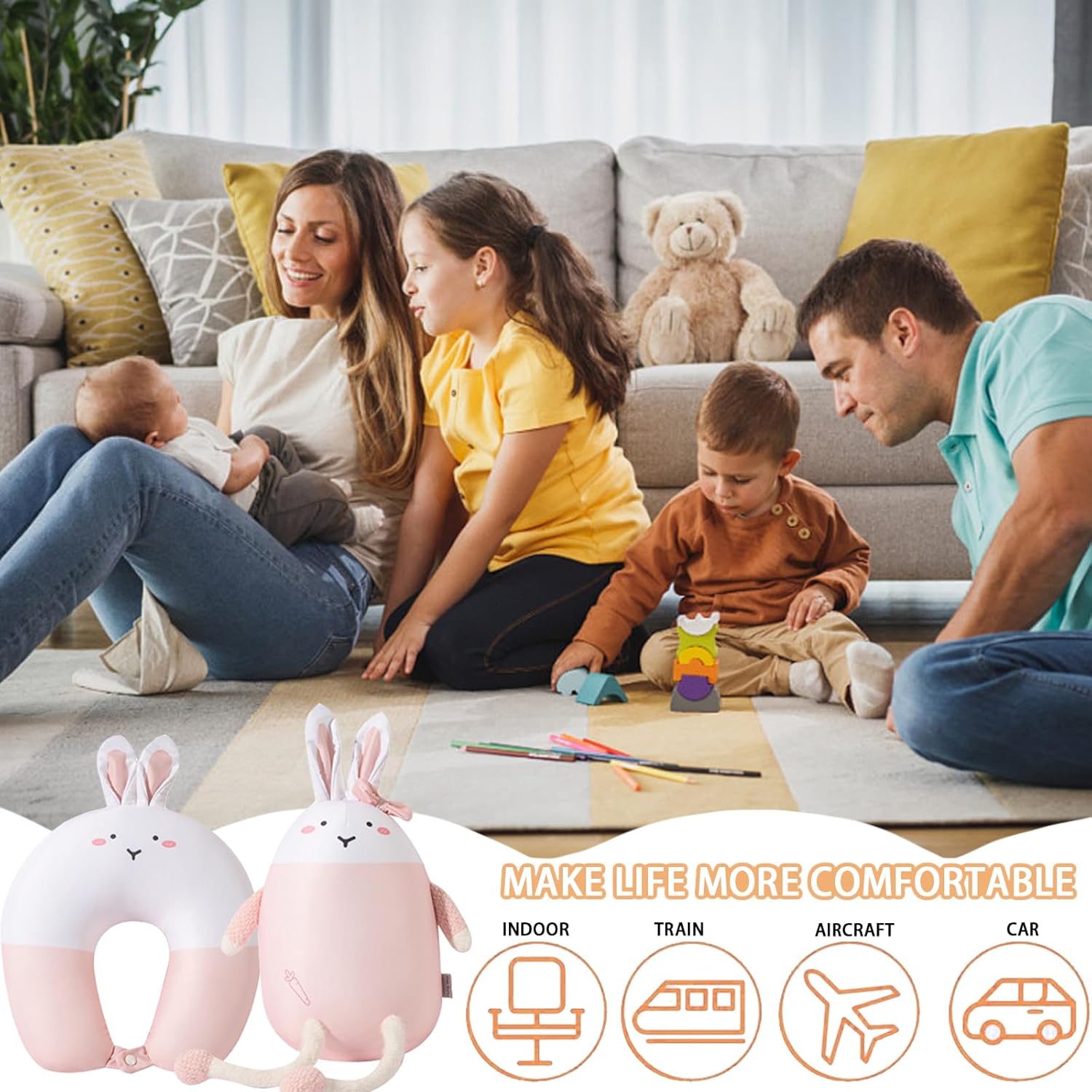 YOUYIKE Dette de périple 2 en 1 envers gamin – Dette de nuque transposable en adroit de U – Bruissement panne lapin – Compère de jeu et relâche envers avions, voitures et voyages