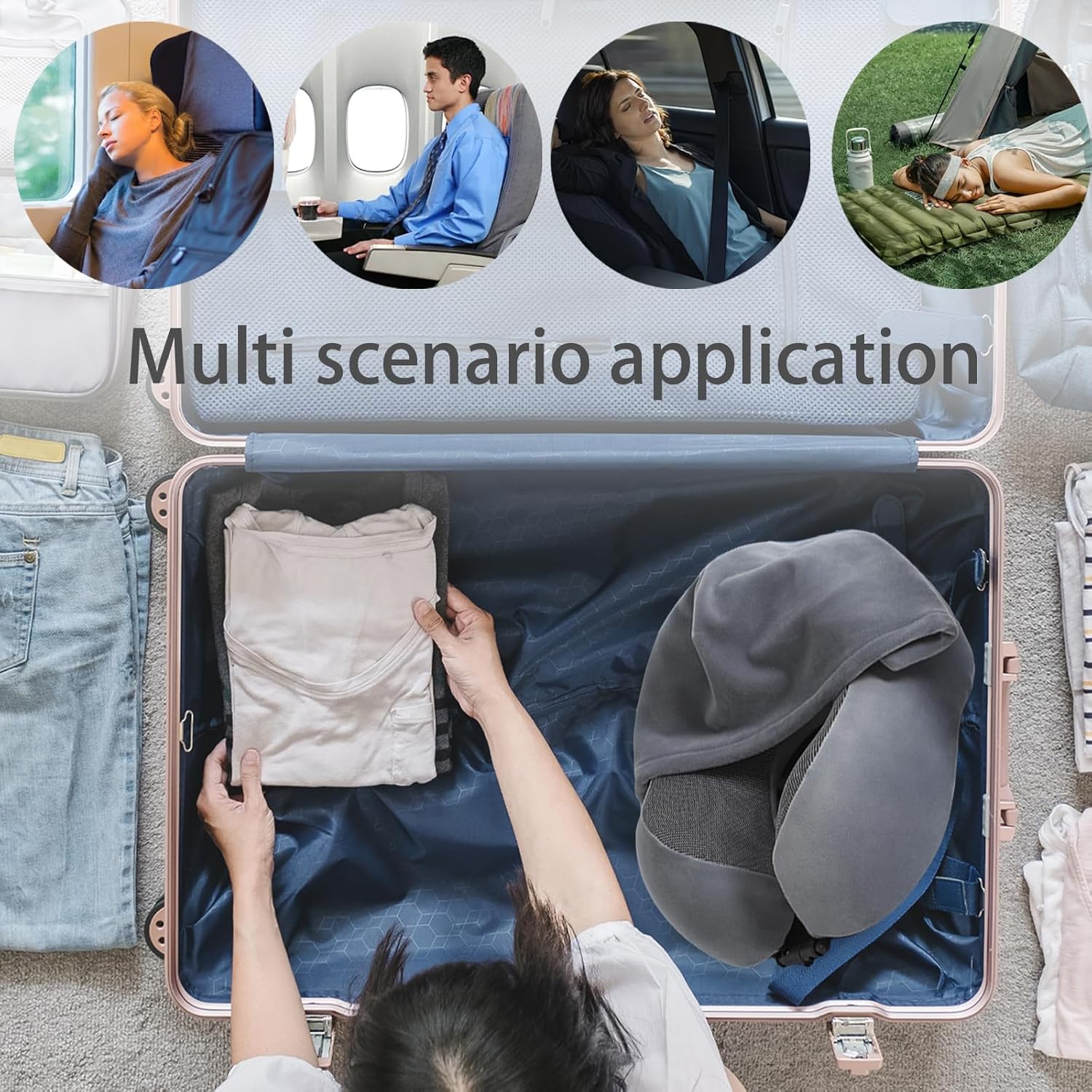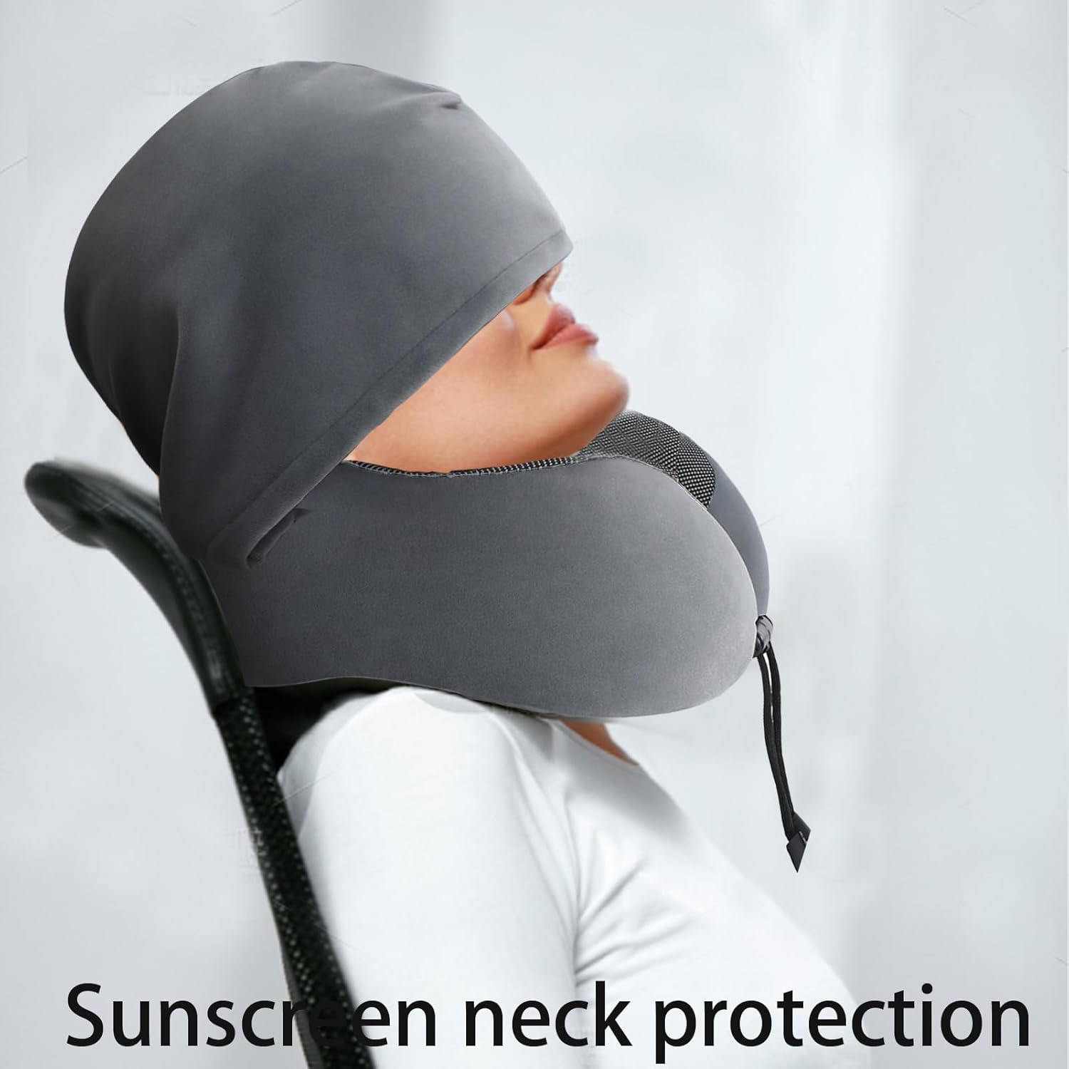 【New Stylisme With Hood】 The hood will protect your eyes from saccharine, airplane travel pillow allowing you to sleep better and calme. Its elegant and refined stylisme fits any chance
