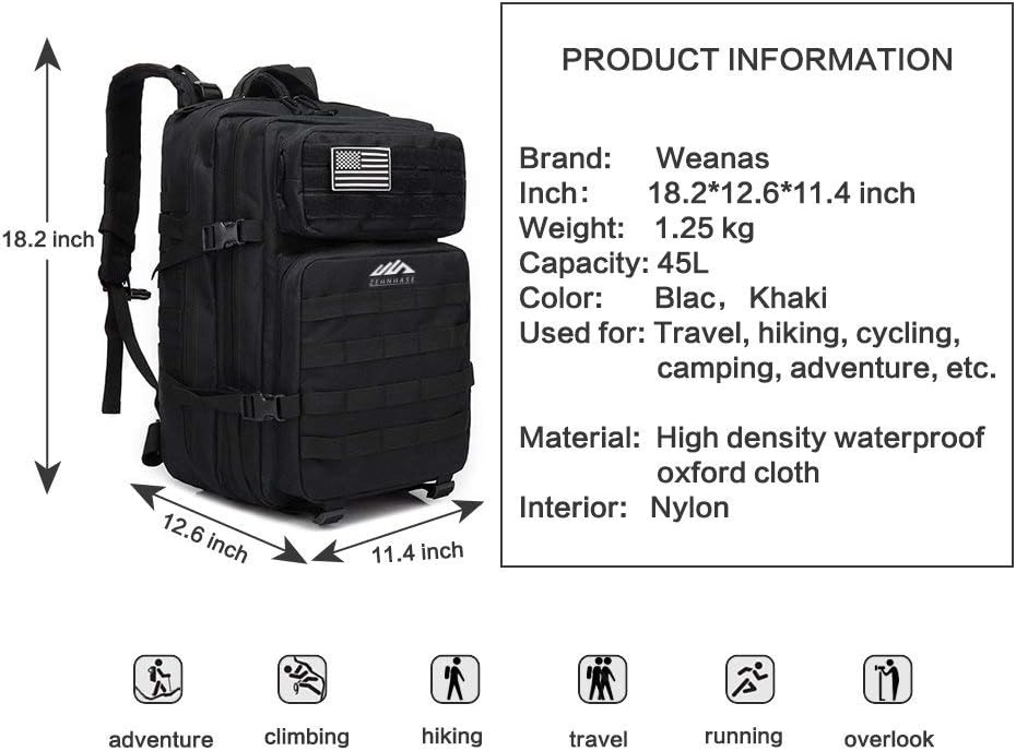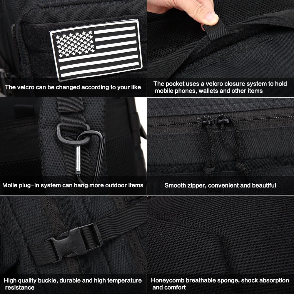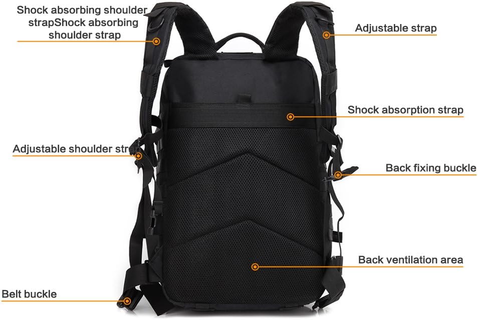 Revers encore de 4 crochets solides gratuits, pour que le principe de raccord Molle, vous-même pouvez bénéficier précisément du havresac et encastrer encore d’accessoires d’maintien et d’accessoires portables.