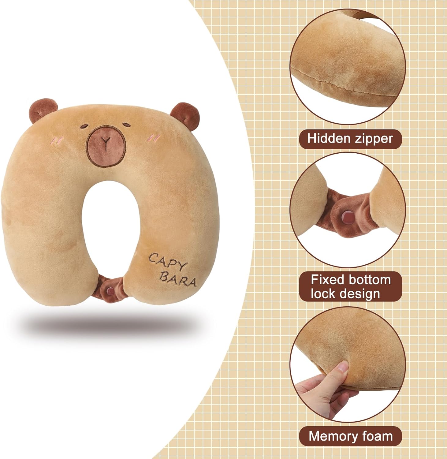 ZMDMAH Travel Pillow for Children of Animals Portable U-Shaped Travel Cushion Capybara Soft Memory Foam Neck Pillow Adults for Car Airplane Office Home