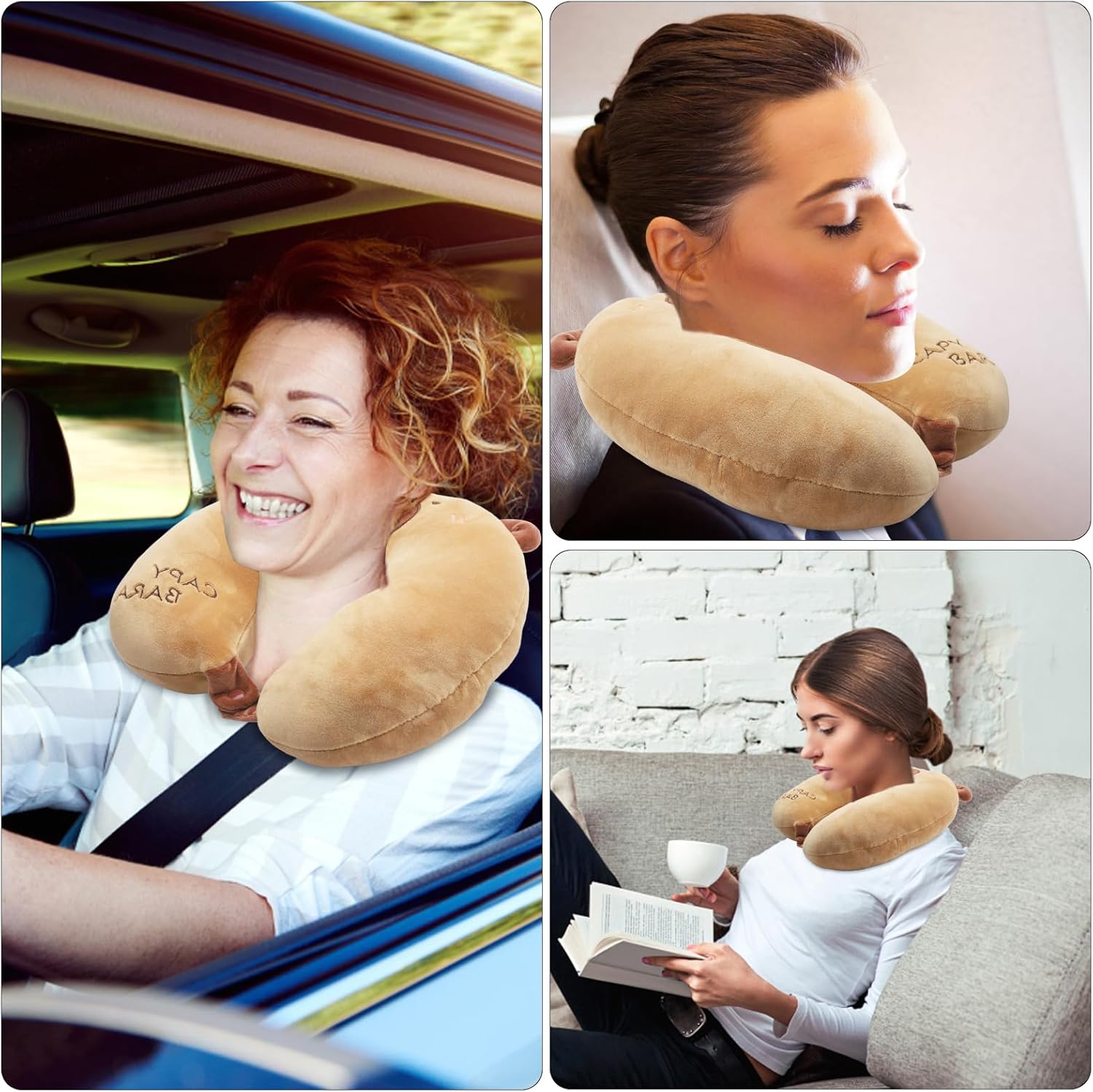 ZMDMAH Travel Pillow for Children of Animals Portable U-Shaped Travel Cushion Capybara Soft Memory Foam Neck Pillow Adults for Car Airplane Office Home